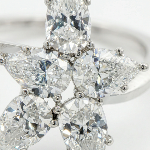 Cluster Ring with White Pear Stone – on White Gold - US6