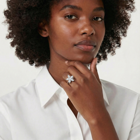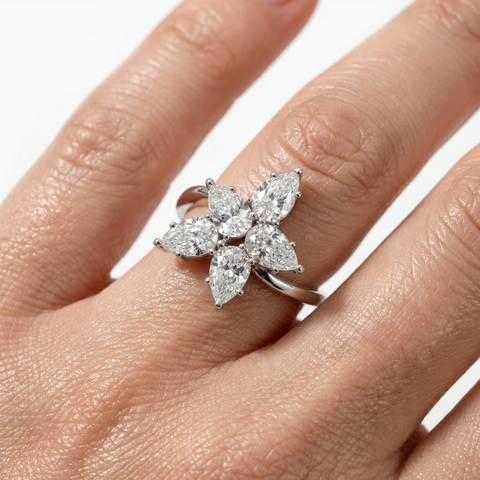 Cluster Ring with White Pear Stone – on White Gold Sale
